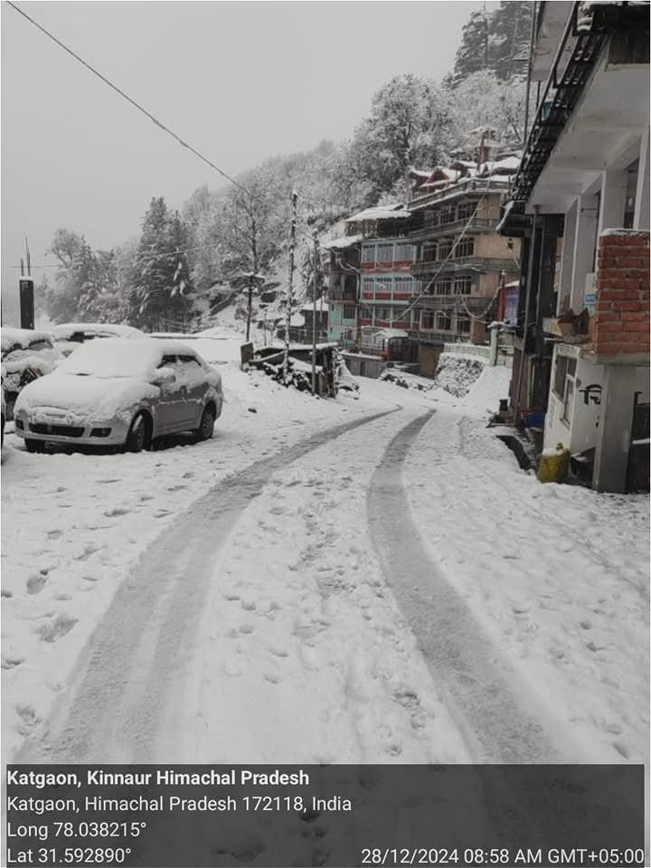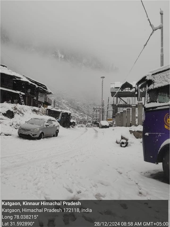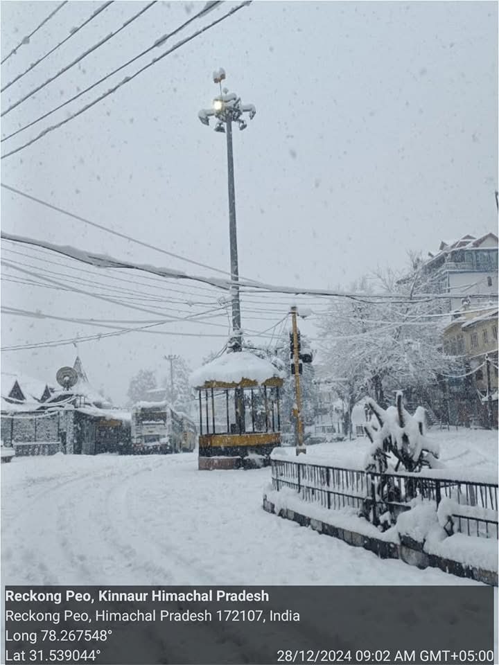Sangla Valley of Kinnaur tribal district of Himachal Pradesh has received maximum snowfall, one feet snowfall till morning. Kinnaur Police has issued this update. You can see here how much snowfall has occurred.