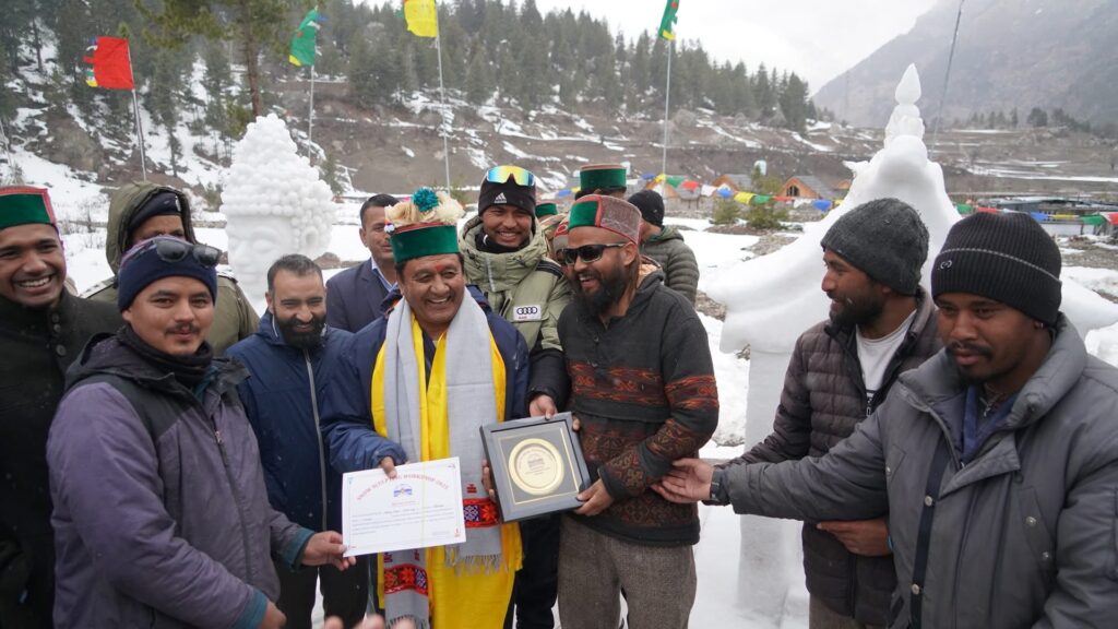 किन्नौर के रकच्छम में आयोजित तीन दिवसीय हिम मूर्तिकला पर प्रशिक्षण शिविर के समापन समारोह में बतौर मुख्य अतिथि शिरकत की