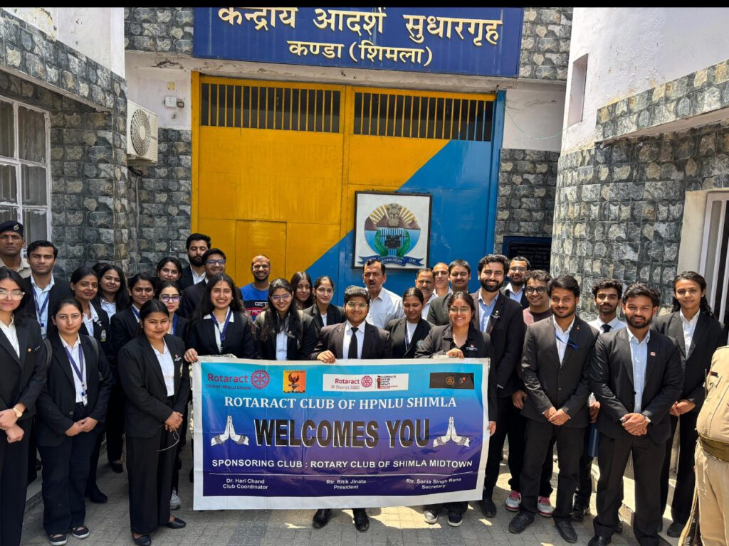 The Rotaract Club of Himachal Pradesh National Law University (HPNLU), Shimla, under the aegis of Prof. (Dr.) Priti Saxena, Vice- Chancellor, HPNLU, organized an educational visit to the Model Central Jail, Kanda, Shimlaon Tuesday, 28th April 2025. The objective of this visit was to provide students with firsthand exposure to the functioning of the Indian prison system and to foster a comprehensive understanding of prison administration, correctional facilities, and rehabilitation initiatives in India.