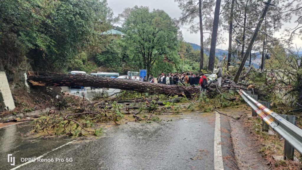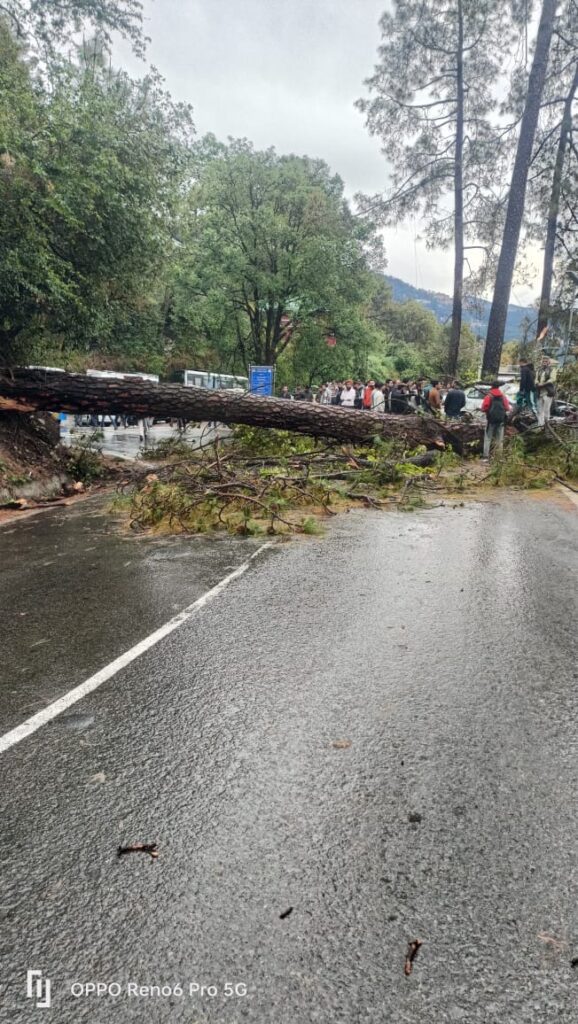 The road between new bus stand and tutikandi bifurcation has been totally blocked due to falling of tree