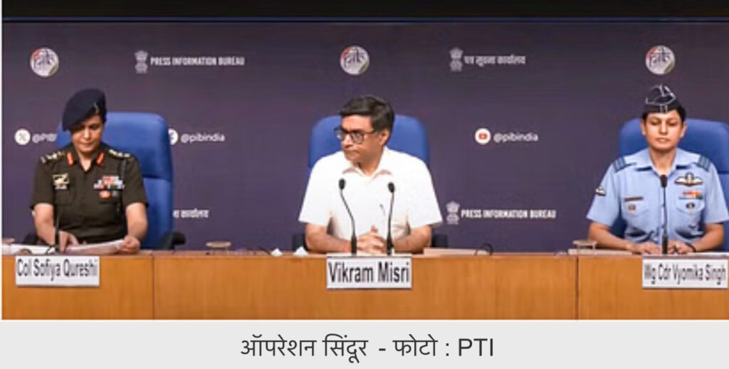 पाकिस्तान में आतंकी ठिकानों पर एयर स्ट्राइक को लेकर बुधवार सुबह 10:30 बजे तीन अफसर मीडिया को ब्रीफ करने आए। प्रेस कॉन्फ्रेंस में सबसे पहले एयर स्ट्राइक का 2 मिनट का वीडियो प्ले किया गया। इसमें आतंकी ठिकानों पर भारतीय सेना की कार्रवाई दिखाई गई।इस दौरान प्रेस कॉन्फ्रेंस को संबोधित करने के लिए कर्नल सोफिया कुरैशी और विंग कमांडर व्योमिका सिंह मौजूद थीं। प्रेस कॉन्फ्रेंस में संसद हमले, मुंबई हमले, पुलवामा हमले और पहलगाम हमले के दृश्य दिखाए गए। सबसे पहले विदेश सचिव विक्रम मिस्री ने प्रेस कॉन्फ्रेंस को संबोधित किया। इसके बाद कर्नल सोफिया कुरैशी और विंग कमांडर व्योमिका सिंह ने ‘ऑपरेशन सिंदूर’ की पूरी जानकारी साझा की। उन्होंने बतायास कि ऑपरेशन सिंदूर 22 अप्रैल को पहलगाम में हुए वीभत्स आतंकी हमले के शिकार नागरिकों और उनके परिवारों को न्याय देने के लिए किया गया। नौ ठिकानों की पहचान कर उन्हें बर्बाद किया गया। इन ठिकानों में आतंकियों को प्रशिक्षित किया जाता था। ये आतंकियों के लॉन्च पैड थे। ऑपरेशन सिंदूर के लिए इन लक्ष्यों का चयन विश्वसनीय खुफिया सूचनाओं के आधार पर हुआ। इसमें यह ध्यान रखा गया कि रिहाइशी इलाकों और आम नागरिकों को नुकसान न पहुंचे।