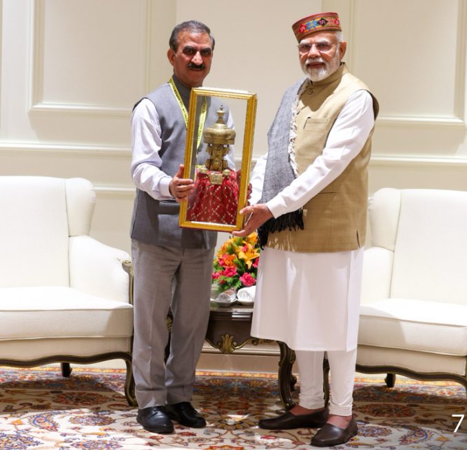 उन्होंने प्रधानमंत्री को प्रदेश सरकार की पर्यटन, हरित ऊर्जा, विद्युत और अन्य क्षेत्रों में की गई पहल के बारे में जानकारी दी। उन्होंने जल विद्युत परियोजनाओं में राज्य के हितों की रक्षा की पैरवी की। उन्होंने इन परियोजनाओं को राज्य को लौटाने के लिए समय सीमा तय करने का आग्रह किया।