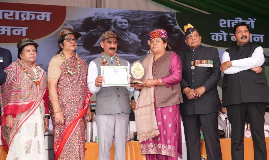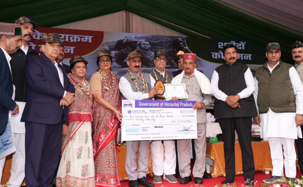 वर्ष 1962, 1965, 1971, कारगिल तथा ऑपरेशन सिंदूर में अदम्य साहस, वीरता तथा बलिदान प्रदर्शित करने के लिए वीरता सम्मान से अलंकृत वीर सैनिकों तथा शहीदों के परिजनों के सम्मान में आज यहां ‘जय हिंद सभा’ कार्यक्रम का आयोजन किया गया। इस कार्यक्रम में मुख्यमंत्री ठाकुर सुखविंद्र सिंह सुक्खू ने ऑपरेशन सिंदूर में सर्वोच्च बलिदान देने वाले शहीद सूबेदार मेजर पवन के पिता गरज सिंह तथा पुत्र अभिषेक को 30 लाख रुपये की आर्थिक सहायता के चैक प्रदान किए। उन्होंने कीर्ति चक्र विजेता शहीद नायक दिलबर ख़ान की धर्मपत्नी जमीला को 15 लाख रुपये तथा शहीद हवलदार रोहित कुमार की पत्नी भारत लक्ष्मी को 10 लाख रुपये के चैक प्रदान किए।