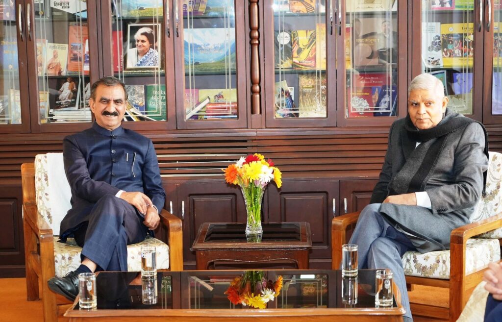 उप-राष्ट्रपति जगदीप धनखड़ ने आज मुख्यमंत्री ठाकुर सुखविंद्र सिंह सुक्खू से उनके सरकारी आवास ओक ओवर में भेंट की।