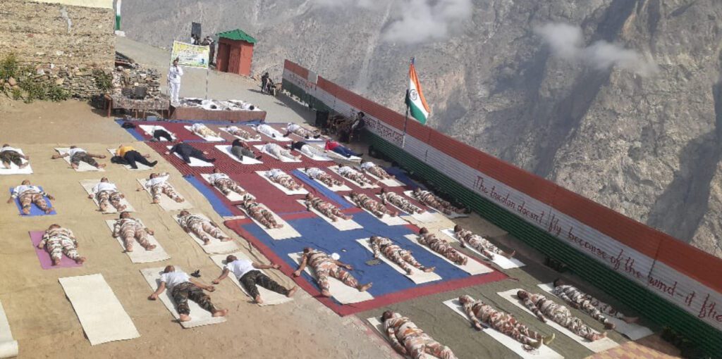 शिपकिला के पास भारत तिब्बत सीमा पुलिस बल के जवानों ने 11 वें अंतरराष्ट्रीय योग दिवस पर किया योग अभ्यास किया ।13,200 फीट की ऊंचाई पर ऐतिहासिक क्षण योग दिवस के अवसर पर रहा है ।