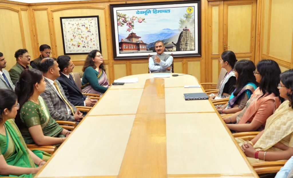डॉ. मनमोहन सिंह हिमाचल प्रदेश लोक प्रशासन संस्थान में आधारभूत प्रशिक्षण प्राप्त कर रहे एक समूह ने आज यहां मुख्यमंत्री ठाकुर सुखविंद्र सिंह सुक्खू से शिष्टाचार भेंट की। इस समूह में भारतीय प्रशासनिक सेवा-2024 बैच के दो अधिकारी और हिमाचल प्रशासनिक सेवा व संबंध सेवाओं के 2025 बैच के 19 अधिकारी शामिल थे।