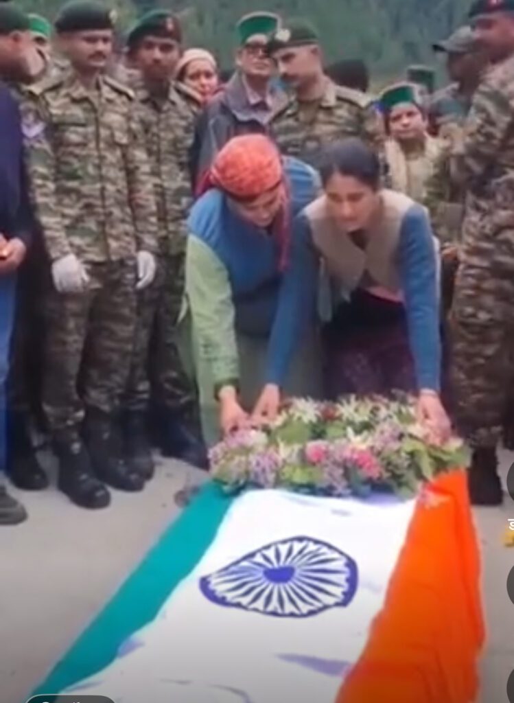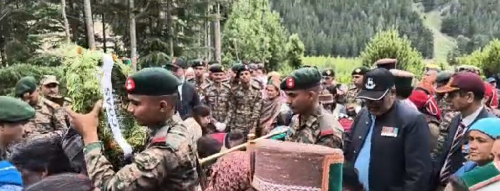 लोगों ने वीर को विदाई दी, बच्चों ने फूल बरसाए और पूरा किन्नौर “भारत माता की जय” और “पुष्पेंद्र नेगी अमर रहें” के नारों से गूंज उठा।
