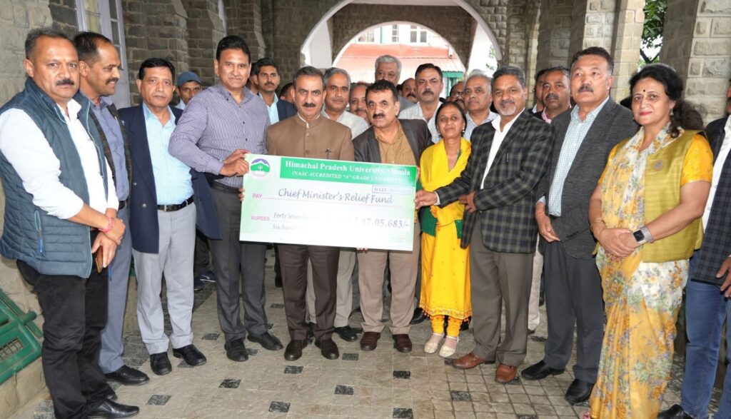 विधायक एवं हिमाचल प्रदेश विश्वविद्यालय शिमला के कार्यकारी परिषद के सदस्य हरीश जनारथा ने विश्वविद्यालय के शिक्षण संकायों और गैर-शिक्षण कर्मचारियों की ओर से आज यहां मुख्यमंत्री ठाकुर सुखविंद्र सिंह सुक्खू को मुख्यमंत्री राहत कोष के लिए 47,05,683 रुपये का चेक भेंट किया।