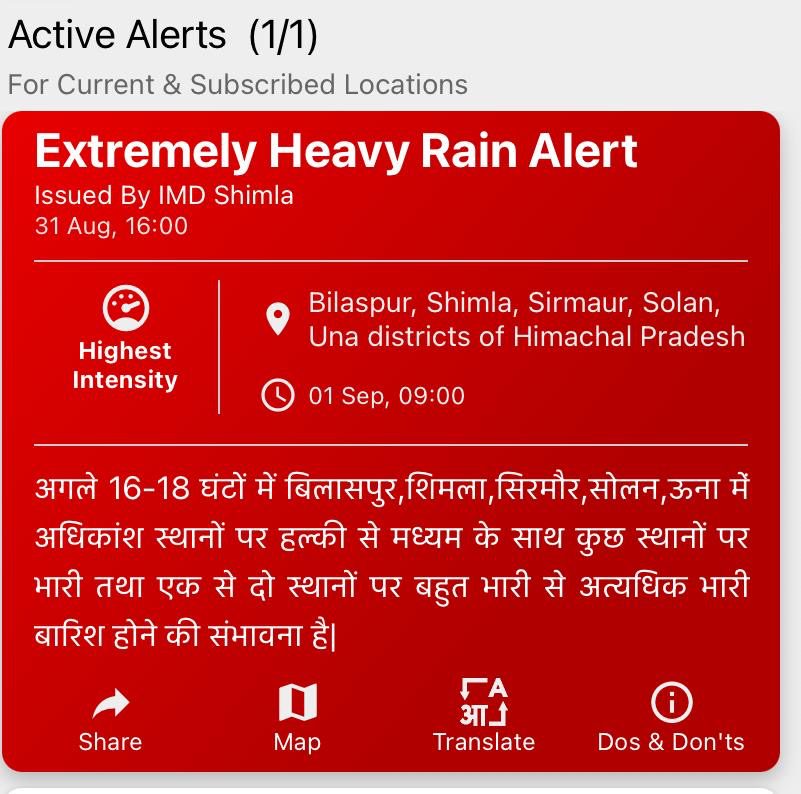 मुख्यमंत्री ने कहा कि मौसम विभाग ने अगले तीन दिनों के लिए भारी बारिश का अलर्ट जारी किया है और प्रदेश के अधिकांश हिस्सों में फिलहाल मूसलाधार बारिश जारी है। ऐसे में सभी लोग सावधानी बरतें और मुश्किल में फंसे लोगों की मदद करने में सहयोग दें। मुख्यमंत्री ने शनिवार को आपदा प्रभावित चंबा और कांगड़ा जिलों का हवाई सर्वेक्षण किया था। आज उनका कुल्लू जिला जाने का कार्यक्रम था, लेकिन खराब मौसम इसमें बाधा बना। ऐसे में उन्हें चंडीगढ़ से सड़क मार्ग से शिमला लौटना पड़ा।