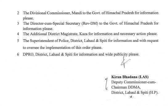 सीमा सड़क संगठन (BRO) की 70 RCC द्वारा 13 नवंबर को भेजी गई रिपोर्ट में भी इन मार्गों को यात्रियों की सुरक्षा को ध्यान में रखते हुए बंद रखने की सिफारिश की गई थी। आपदा प्रबंधन अधिनियम 2005 की धारा 34 के तहत शक्ति का प्रयोग करते हुए DDMA ने इन मार्गों पर किसी भी प्रकार के यातायात को पूर्ण रूप से प्रतिबंधित कर दिया है। आदेश में यह भी स्पष्ट किया गया है कि इन निर्देशों का उल्लंघन करने पर अधिनियम की धारा 51 के तहत कार्रवाई की जाएगी, जिसमें एक वर्ष तक के कारावास या जुर्माने, अथवा दोनों का प्रावधान है।