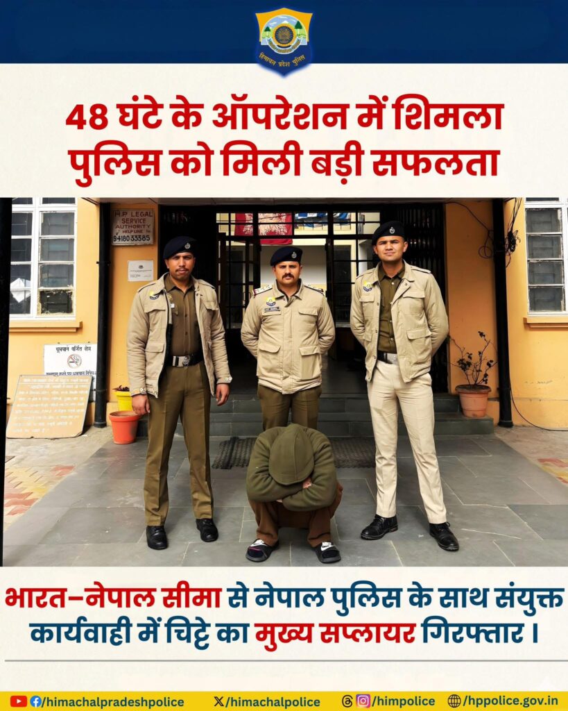 दिनांक 13/02/2026 को थाना रोहड़ू की टीम द्वारा गहन जांच और टेक्निकल सर्विलांस करके व उत्तराखंड व नेपाल पुलिस की संयुक्त मदद से वांछित आरोपी विजेन्दर को 48 घंटे के अन्दर ऑपरेशन करके वनवासा नामक स्थान जो कि भारत-नेपाल बार्डर पर स्थित है, से पकड कर गिरफ्तार कर लिया है।