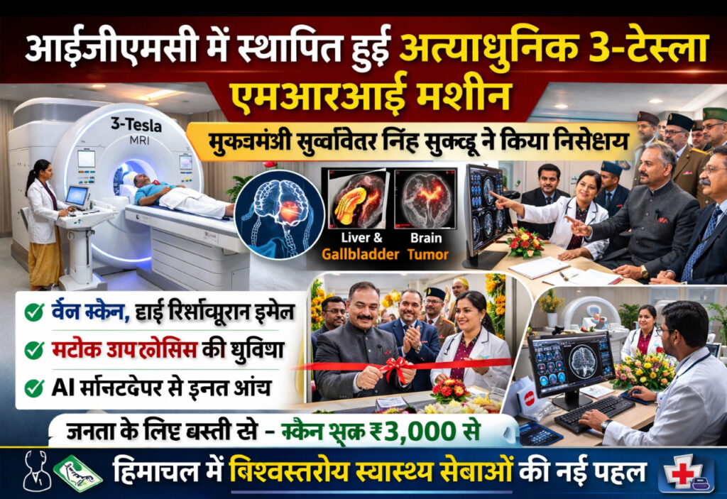 हिमाचल प्रदेश के मुख्यमंत्री Sukhvinder Singh Sukhu ने स्वास्थ्य मंत्री Dhani Ram Shandil के साथ Indira Gandhi Medical College (आईजीएमसी) का दौरा कर अस्पताल में हाल ही में स्थापित अत्याधुनिक 3-टेस्ला (3-Tesla) एमआरआई मशीन का शुभारंभ किया।